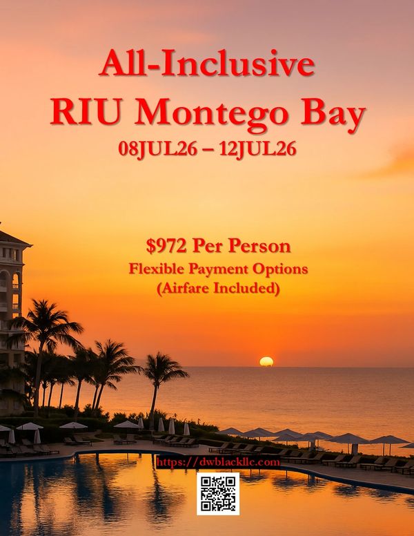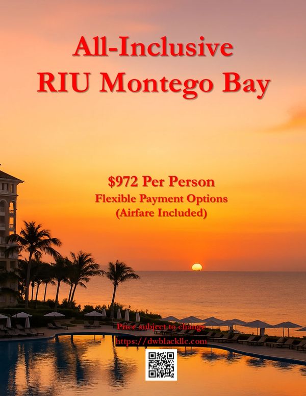 Dining at Riu Montego Bay is an experience in itself, offering everything from American buffet breakfasts with live cooking stations to authentic Italian and Asian cuisine. Don’t miss the traditional Jamaican barbecue served right on the beach, and take advantage of the many bars throughout the property for refreshing cocktails and light bites any time of day. With daytime activities like RiuFit, watersports, live shows, and late-night parties, plus spa treatments at the Renova Spa, this all-inclusive getaway ensures you’ll return home refreshed, recharged, and filled with lasting memories.