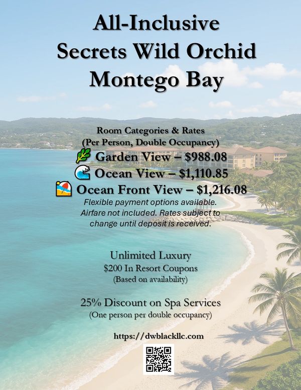 Whether you’re lounging by the infinity pool with a tropical cocktail or indulging in a candlelit dinner overlooking the Caribbean, Secrets Wild Orchid offers a breathtaking backdrop for romance and renewal. Walk hand-in-hand at sunset, soak in a private jacuzzi, hop between restaurants, or simply savor a spa treatment — all designed to let you slow down and savor each moment.