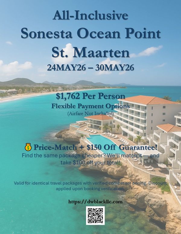 Perched above Maho Bay on Sint Maarten’s western tip, Sonesta Ocean Point Resort delivers 24-hour, all-inclusive sophistication in an exclusive, all-suite adults-only setting. Enjoy boutique luxury, stunning views, and seamless access to adjacent resort perks.